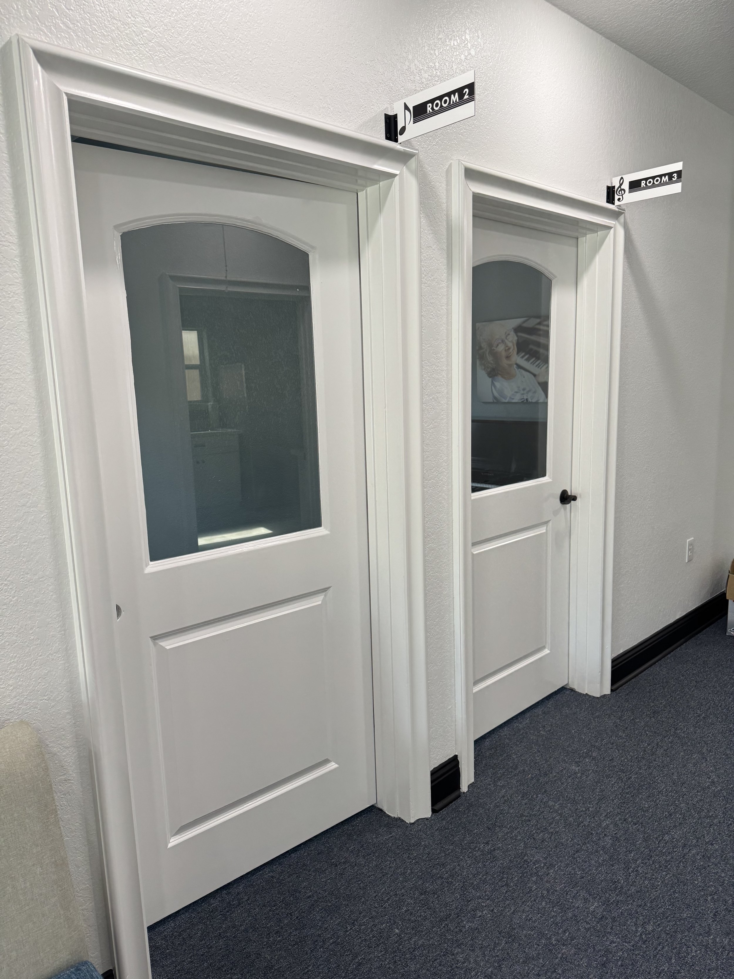 Gone are the days of uncertainty for parents wondering what happens behind closed doors. We understand the importance of maintaining a balance between privacy and transparency. Our music school features glass windows on every door, creating an atmosphere of openness and fostering a strong connection between teachers and parents. These windows provide parents with a window of opportunity to observe their child's lesson, ensuring that students can enjoy their privacy while parents can rest assured knowing their child is safe.